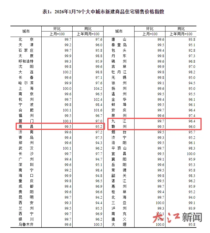 1月房价公布!南昌、九江、赣州新房销售价格涨跌不一