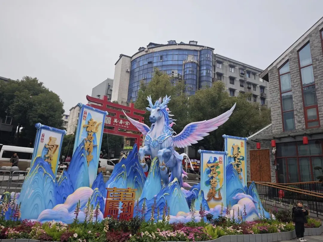 早点10点半到达,人已经开始多起来了,新年门口布置了好大一匹蓝色马,怪好看的