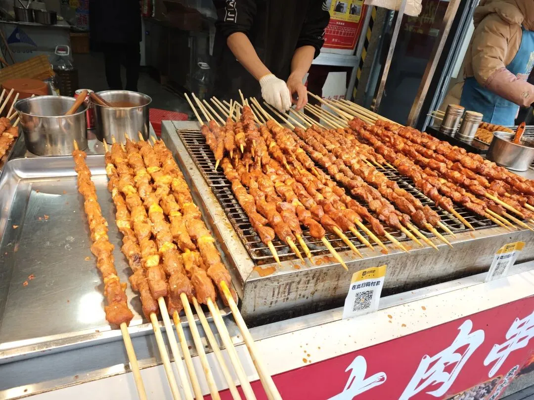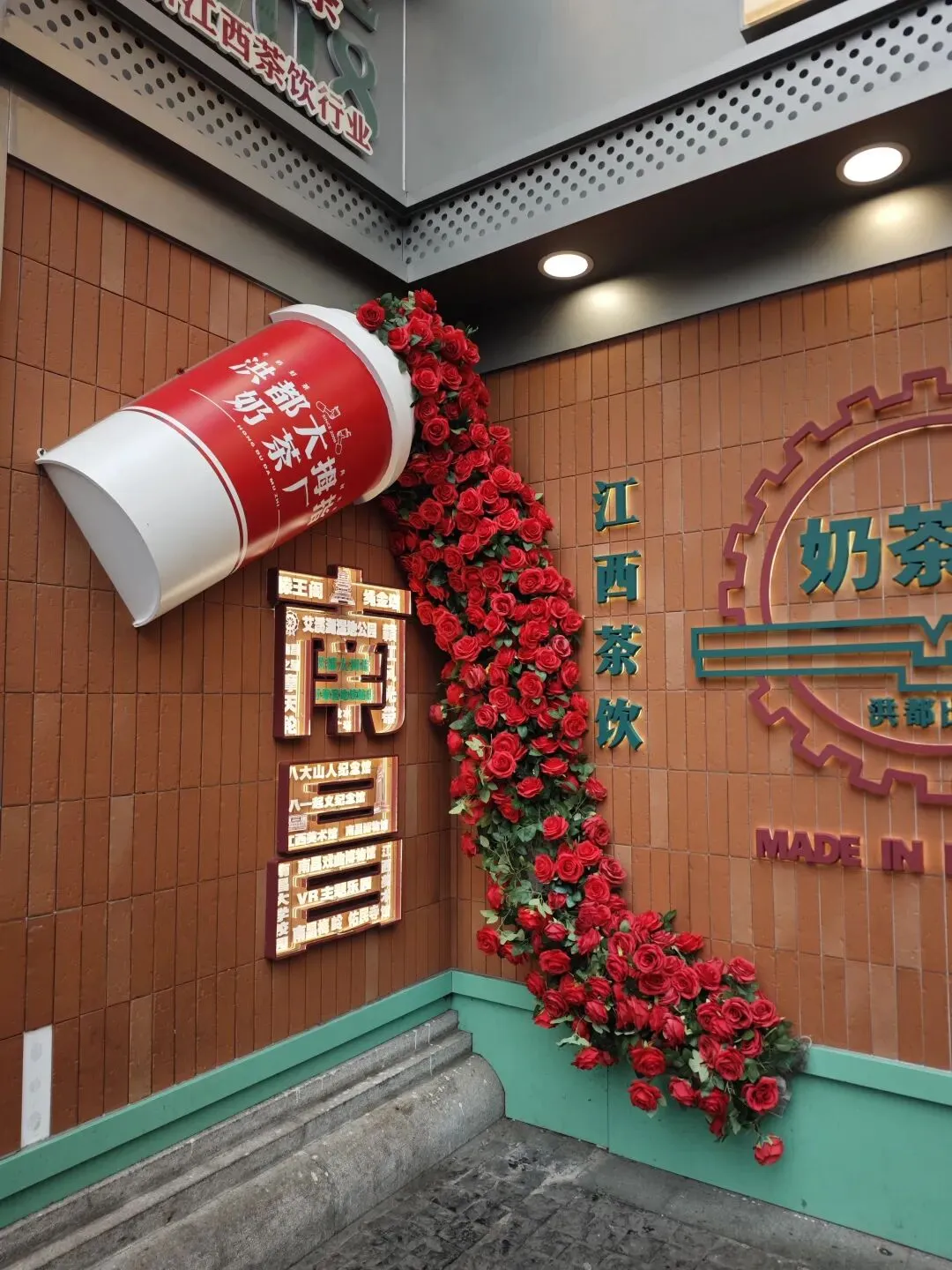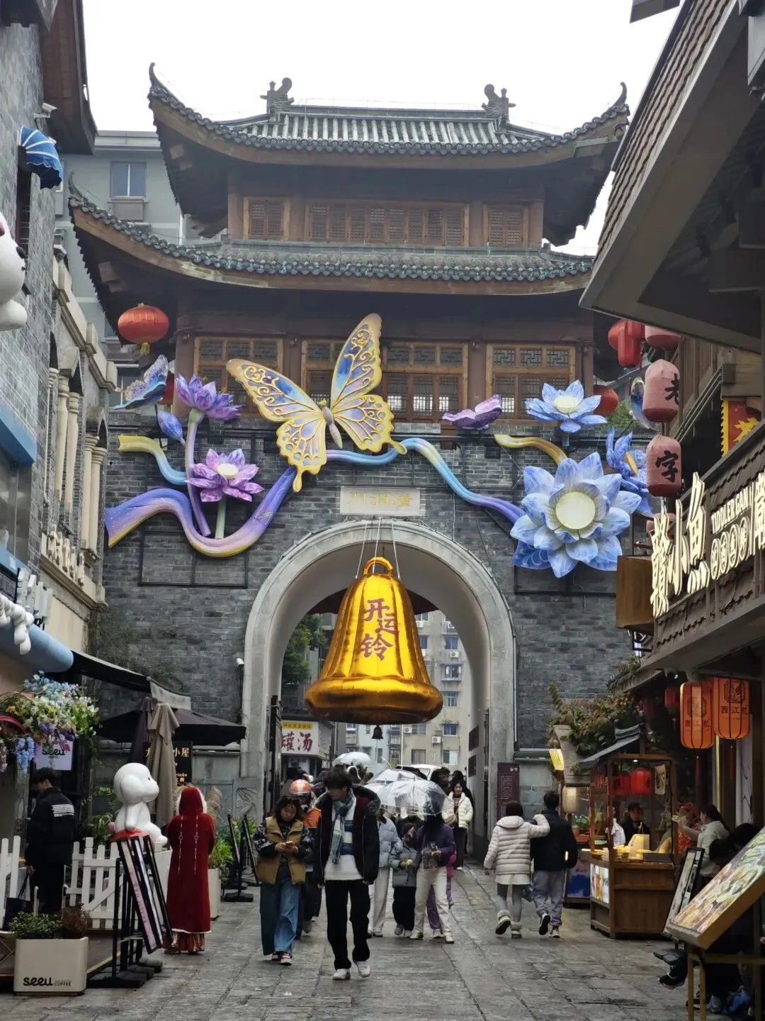 到处都是的洪都大拇指,去年在南昌高铁站喝过,口感和霸王茶姬差不多,都是茶底为主的奶茶吃点小吃,可以开始逛万寿宫了。万寿宫已有1700多年的历史,为纪念“江西福主”许逊而建,“神功妙济真君”的“许真君”指的就是他。进去右边是白虎祠,左边是青龙祠的风水位。里面很大,真君殿,玉皇殿,三宫殿,药王殿。另外万寿宫是属于道教殿,进去不要乱拜,和佛教是不一样的。建议有条件的可以请个讲解,不然就只能当是个普通建筑看看就出来了。带小朋友的难处就在这,呆不住,到处跑,一会就要出来了。有时间的话真的可以好好了解一下听听讲解,挺有意思的。我们就只能是逛一下就出来了。然后就在旁边逛吃逛吃 万寿宫的历史故事估计没几个人知道,但它吃的是真的多,必打卡之一的KUNTEA鲲茶万寿宫店,这种茶类奶茶特色就这样,这家店晚上可以听戏曲,早去可以占个好位置。这家臭豆腐不错,面皮脆脆的,味道属于辣甜辣甜,我们过去的时候还排上队了(大肉串一般般)吃得是很多,但味道就那样,景色白天也不错,天气不怎么好,有点灰灰,下午就开始下雨了我们还转场到八一广场,坐两个地铁站,出来就是江西省美术馆,没预约到号,只能在门口看看了累了累了,打道回府。南昌的冬天碰到下雨确实冷啊,期待下次能遇见蓝天白云。