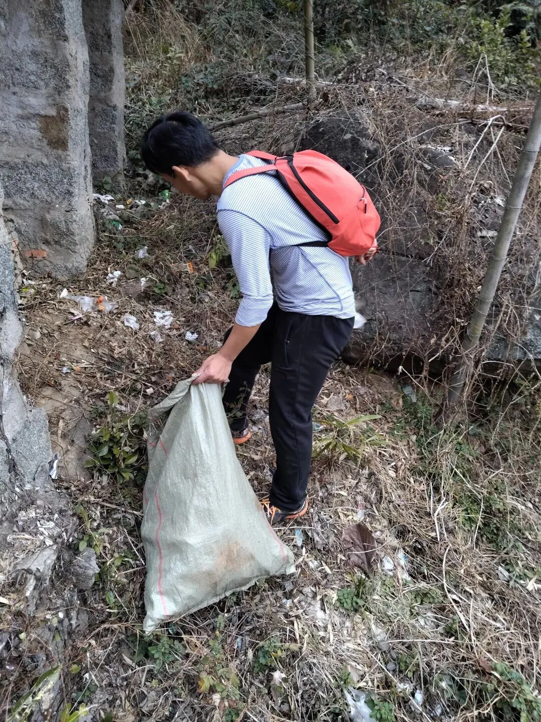 高坊下山的古道边垃圾遍地,继续清理中。。。