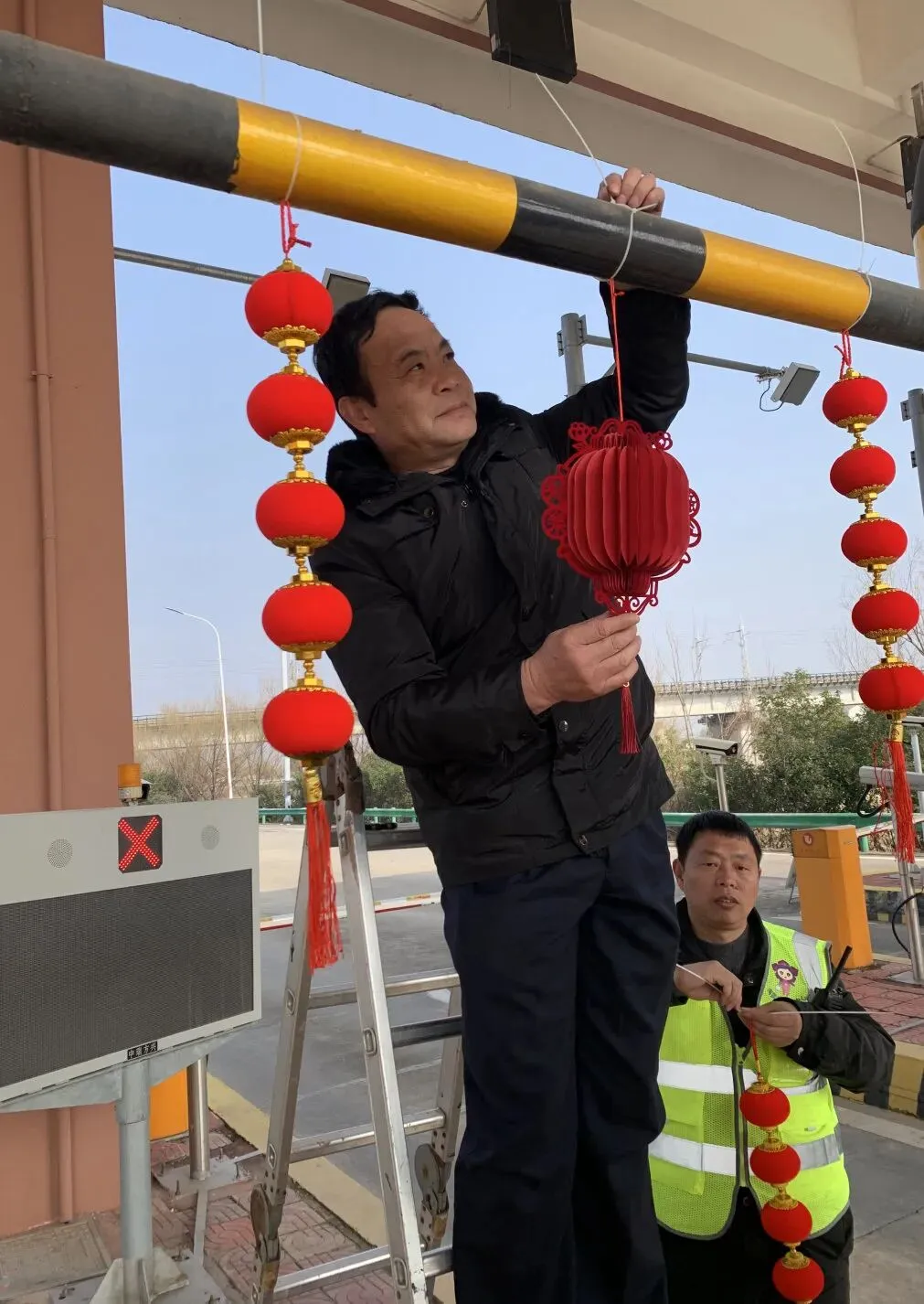 “年前我们把整个站区都打扮了起来,让过往司乘和全体员工感受到家的温暖”正在布置现场的收费班长笑着说道。