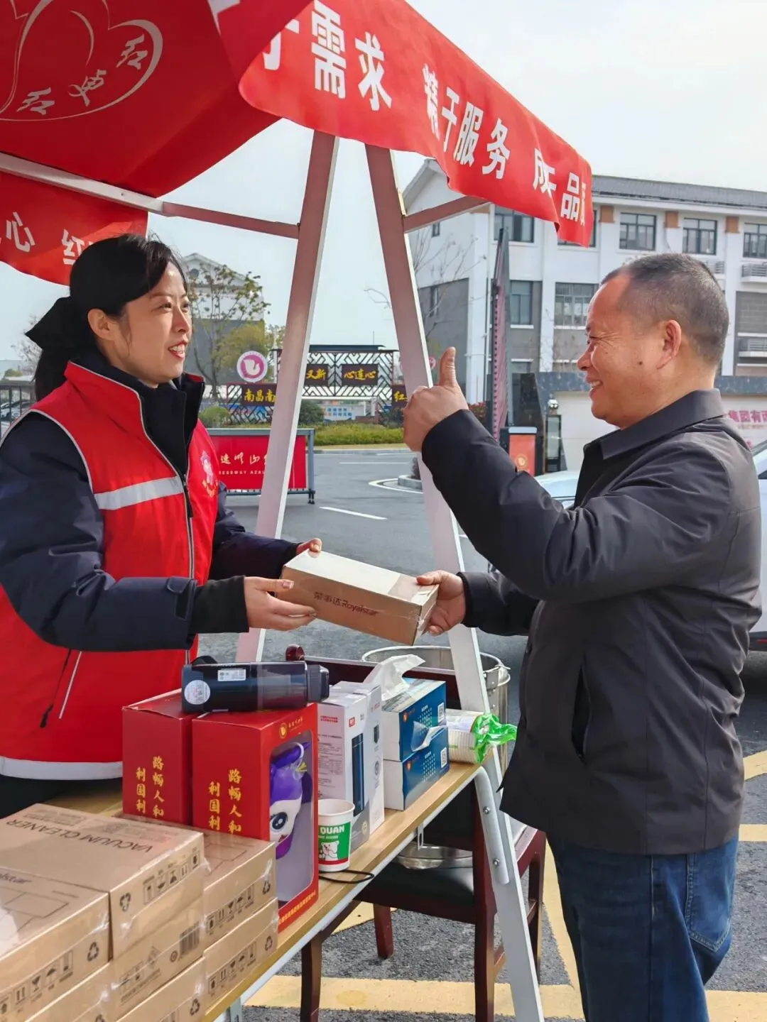 “师傅,送您一个小福马挂件,祝您新春快乐,一路平安!”除夕前夕,南昌南收费所的志愿者们身着红马甲,在收费广场设立便民服务台,为过往司乘人员送上精心准备的新春小礼品。除了寓意吉祥的中国结挂饰、生肖玩偶,志愿者们还准备了定制的新春福袋,里面装有春联、福字、红包袋等实用物品。
