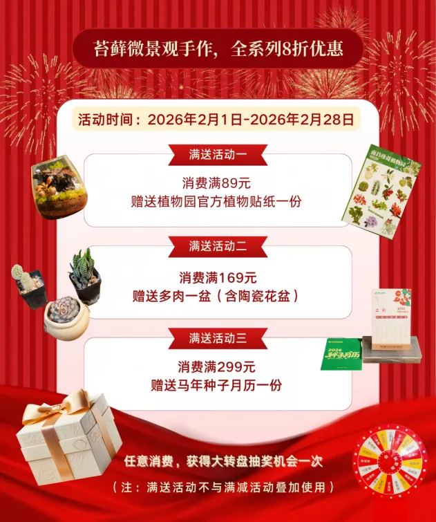 活动期间分享新春游园打卡照片,配文 “打卡南昌珍奇植物园寻福记” 并@南昌珍奇植物园官方账号,凭相关图文,即可前往园区珍奇文创店参与大转盘抽奖,解锁更多新春惊喜。
