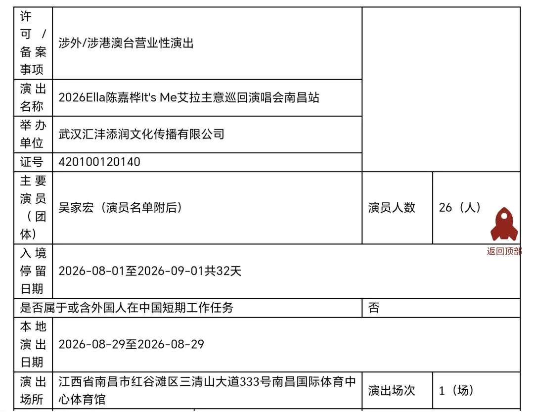2026年8月29日一 陈嘉桦 一 南昌演唱会