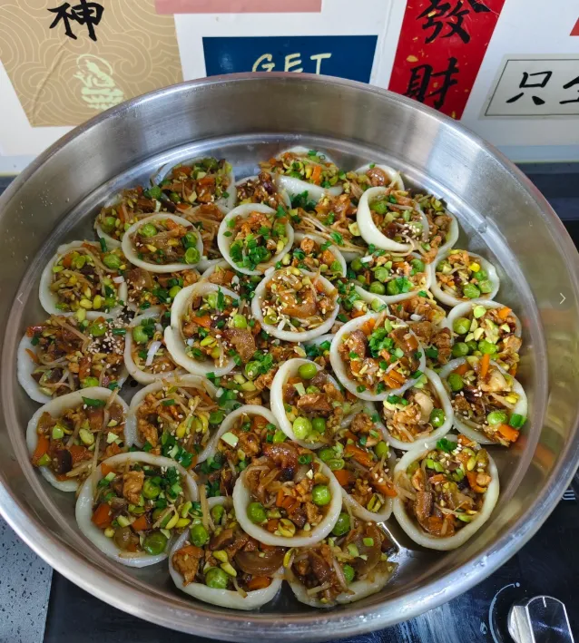 一定要尝尝灯盏稞这小吃长得像个小碗,外皮是用大米磨浆捏的,里面填满豆芽、香菇、鲜肉。在油锅里一炸,外皮变得酥脆金黄,咬开时“咔嚓”一声,里面的馅料热气腾腾地涌出来,软糯咸香,口感层次极丰富。