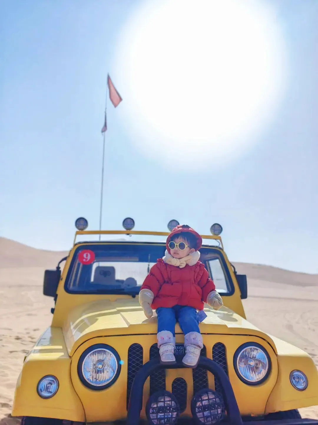 1. 沙漠温差大,防风羽绒服+防沙鞋套+护目镜+口罩必备