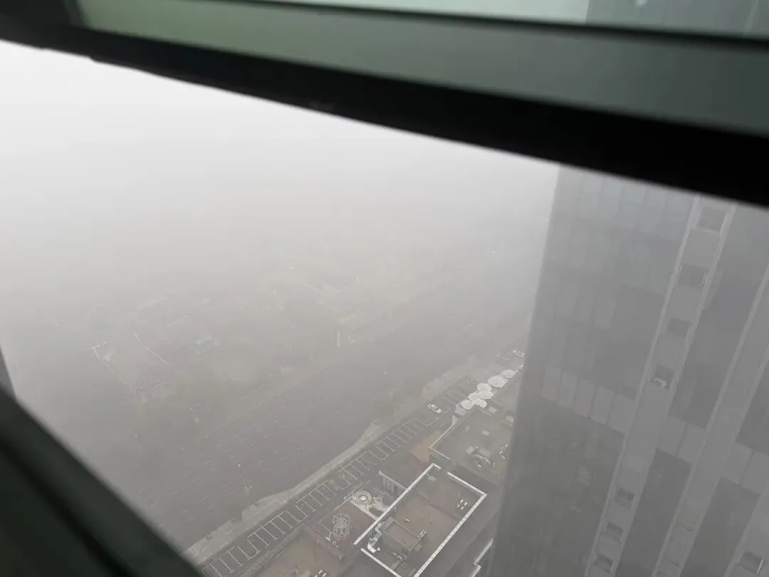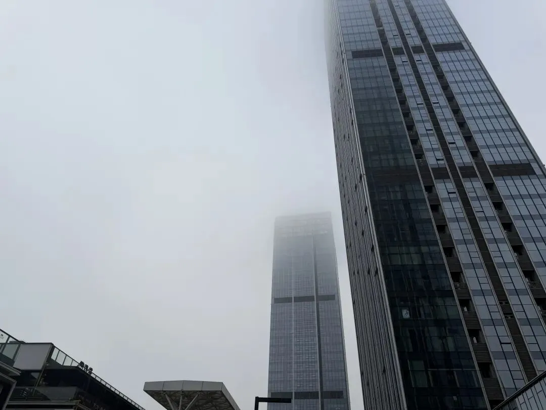 记者看到,南昌之星摩天轮半截隐入雾中,高楼楼顶也被雾气遮挡。