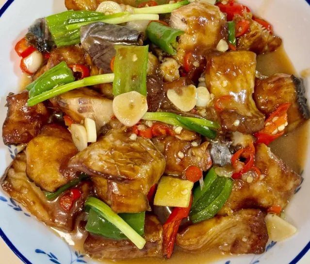 【赣南小炒鱼】这菜讲究个“鲜嫩”。草鱼切块,不过油,直接用红薯粉抓匀。锅里下猪油,姜蒜爆香,鱼块滑进去,倒点米酒和醋。火要大,手要快,带着锅气出锅。酸辣鲜香,鱼肉滑得挂不住筷子,一口下去,那个嫩劲儿,绝了。