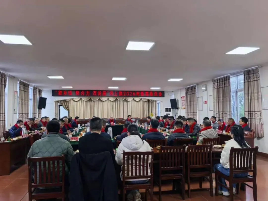 为进一步凝聚乡贤力量,共谋家乡发展,2026年2月13日,冈上镇举办了2026年“叙乡情 聚合力 谋发展”新春恳谈会。江西省审计厅厅长(二级巡视员)赵小春,南昌县政协副主席涂相鸿同志莅临参会,冈上镇全体党政班子成员与冈上籍家官代表、在外创业企业家代表、部分本地优秀企业家代表,以及各村(社区)书记等共计60余人齐聚一堂,共叙桑梓情谊、共绘发展蓝图,会议由镇党委副书记肖衍跃主持。