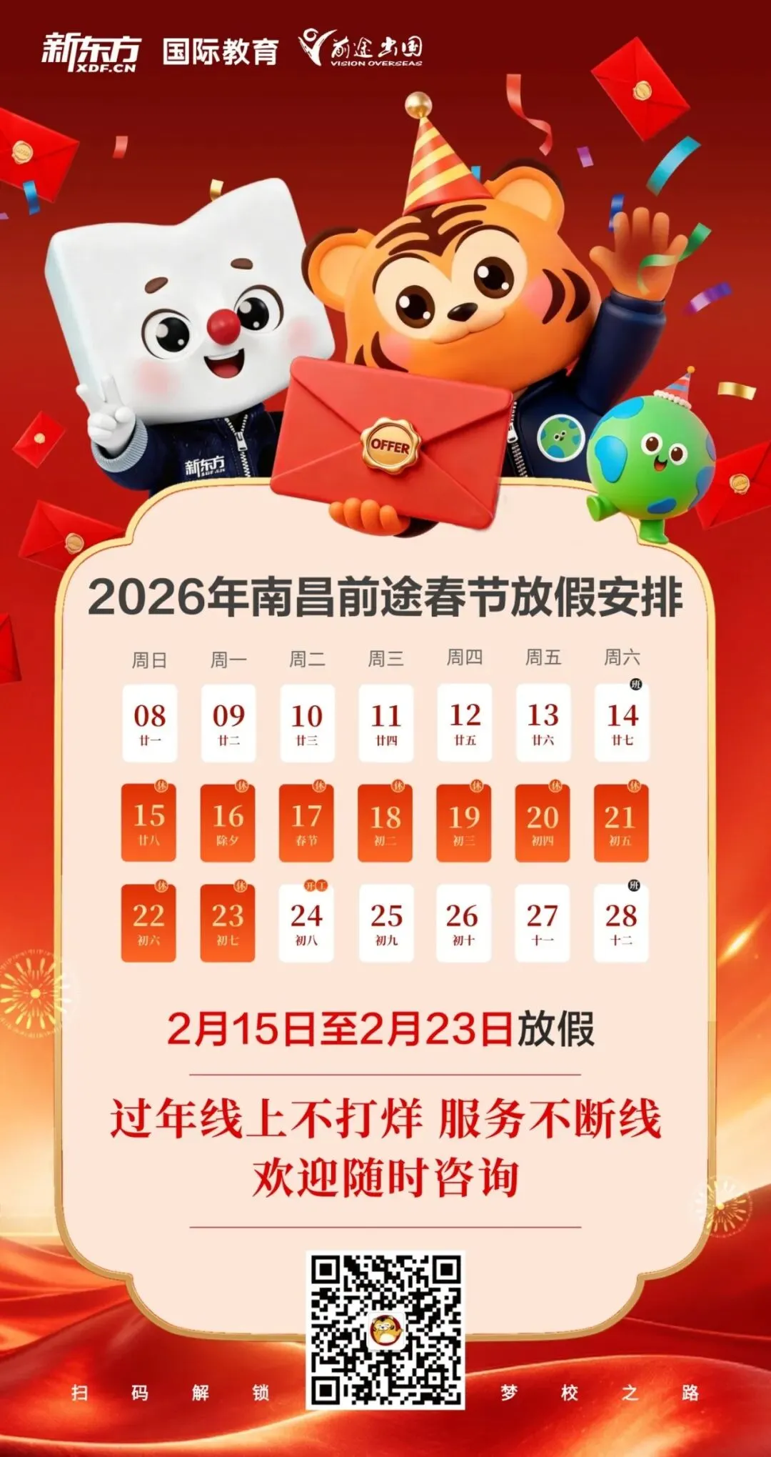 春节将至,前途有爱 | 南昌新东方前途出国放假通知!