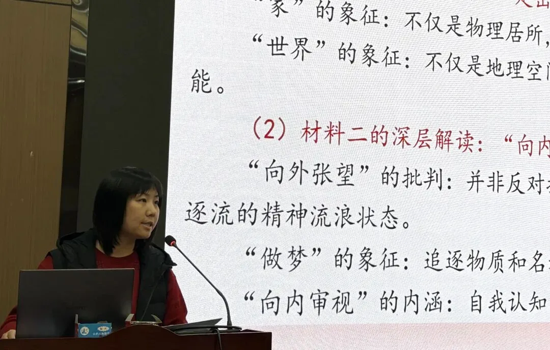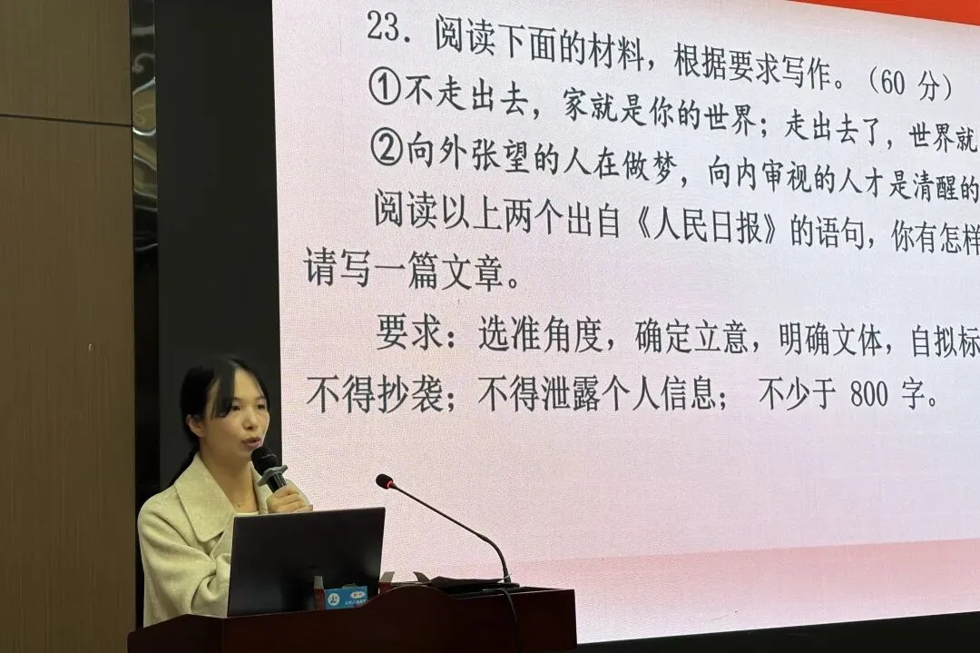 紧接着高三年级吴燕老师从阅卷中精准点出学生论证浮泛的共性问题,又给出了三阶提升路径,既戳中了“作文深刻性”培养的痛点,又给出了实打实的解决方向,其发言逻辑清晰、指导性强,让我们对如何引导学生挖深论证、彰显思想厚度有了更清晰的认知。