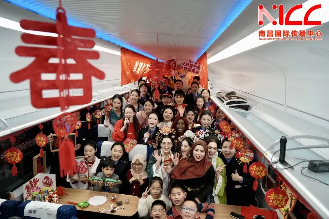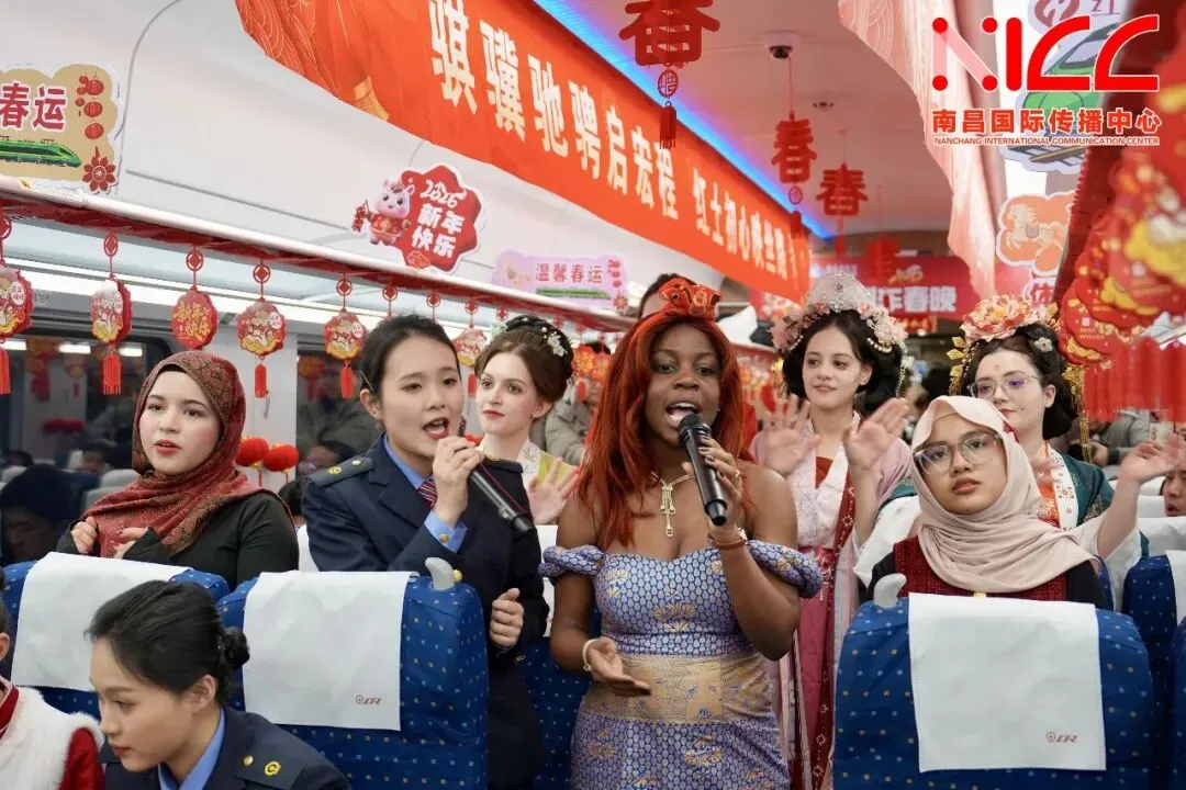 Train staff joined international students and passengers from Russia, Indonesia, Gabon, Morocco and other countries in singing and dancing to bond over friendship.In this mobile family on the move, travelers experienced the charm of diverse cultures and the warm, joyful atmosphere of the Chinese New Year.
