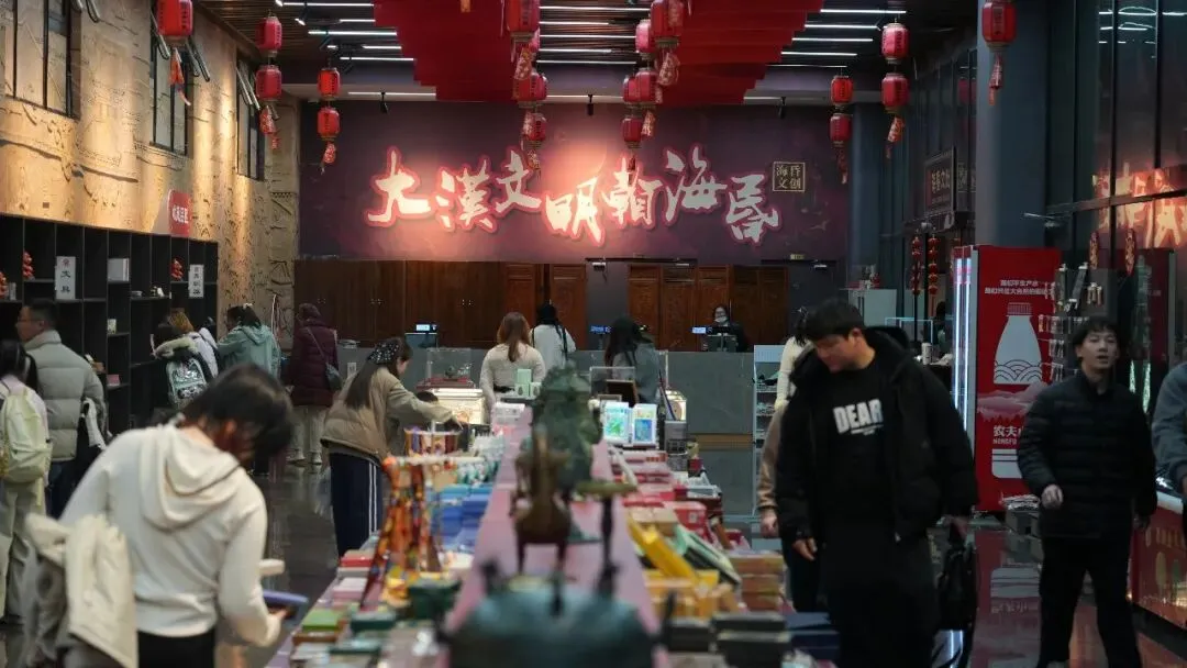 报道中提到,在江西南昌汉代海昏侯国遗址博物馆文创店内,千年前的马蹄金、当卢等车马器、金器文物经过创新转化,化身为马蹄金毛绒冰箱贴、当卢书签等吉祥文创,成为游客追捧的新春好彩头。