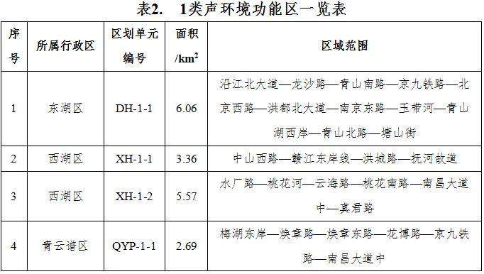 根据南昌市城区的城市用地规划及现状,本次调整不设0类声环境功能区。声环境功能区域单元与城市规划及现状相符,单块的声环境功能区划单元的面积,原则上不小于0.5km2。