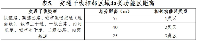 表5. 交通干线相邻区域4a类功能区距离
