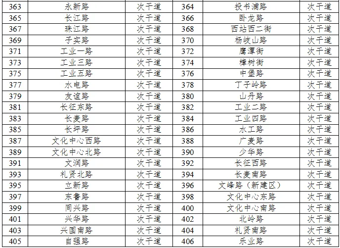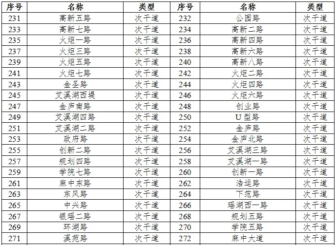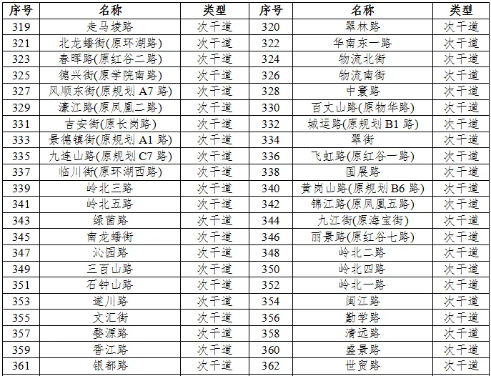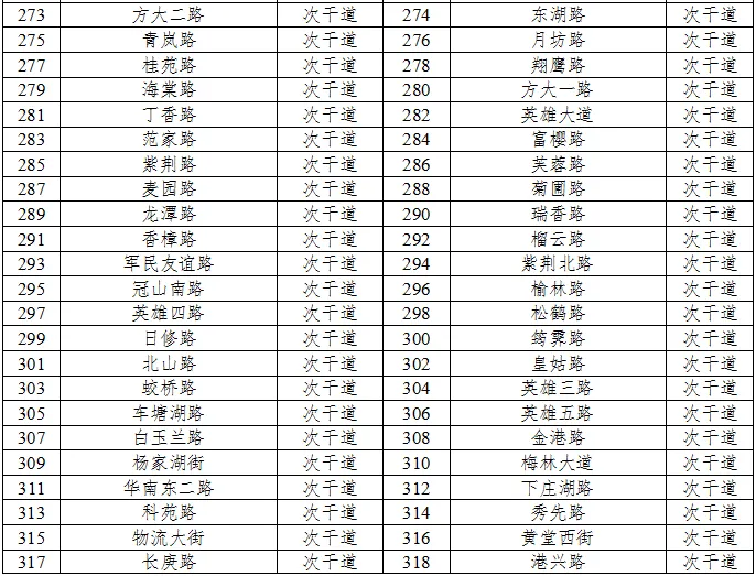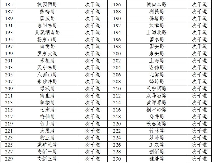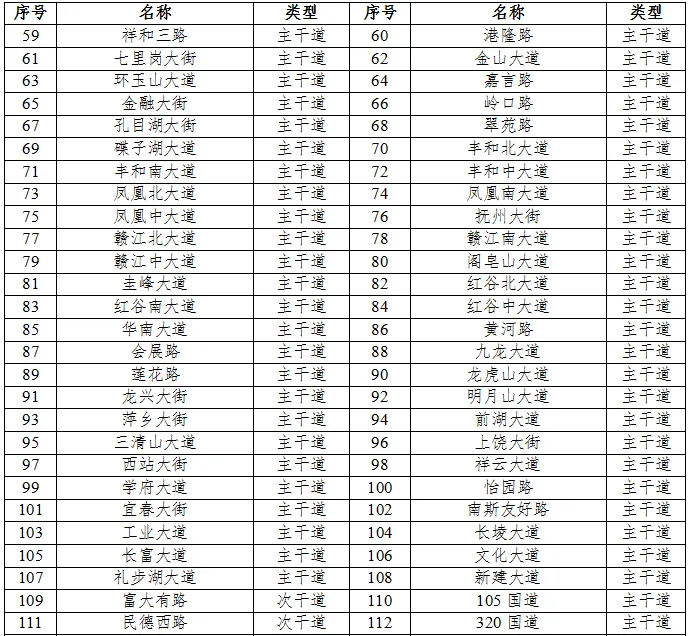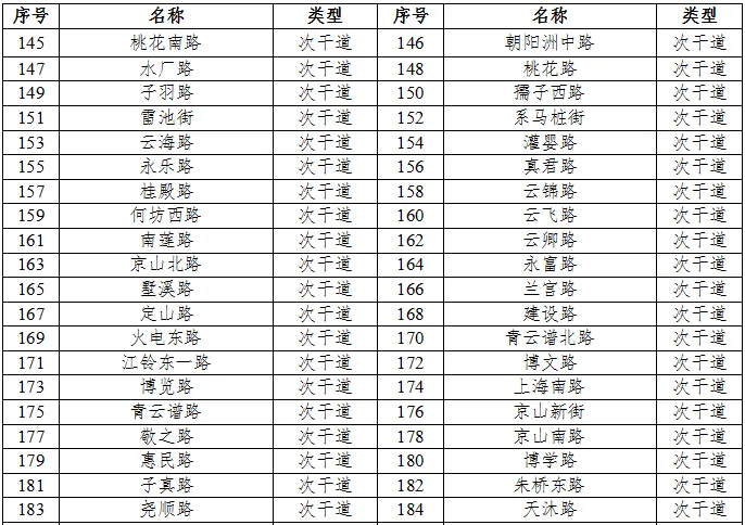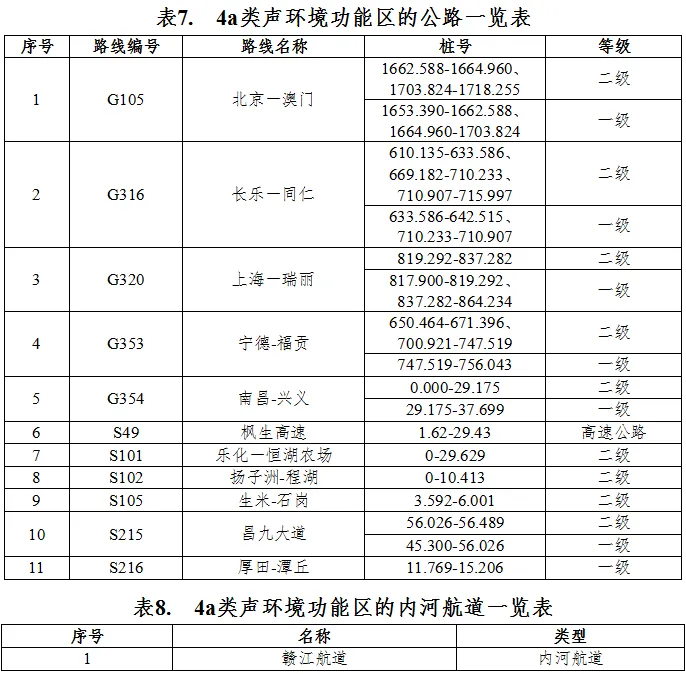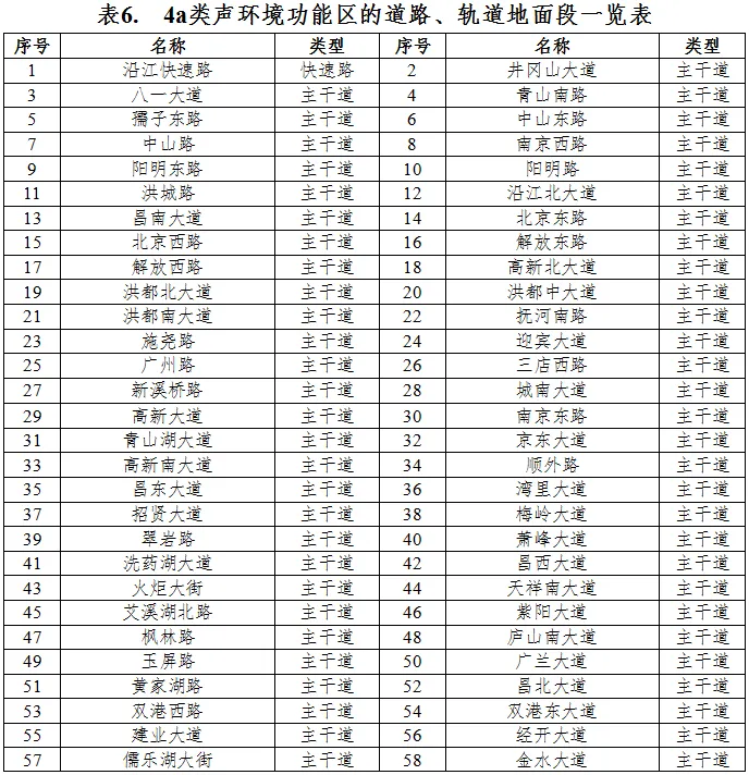 划分4a类声环境功能区的城市道路、公路、内河航道如下表6、表7、表8所示。