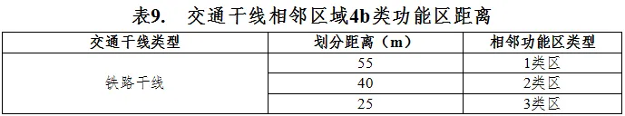 4b类区为铁路干线边界线外一定距离以内的(距离要求见表9)区域。