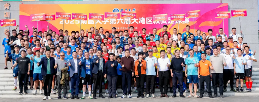 12月6日至7日,2025南昌大学第六届大湾区校友足球赛在广州市番禺区木生缘足球场隆重举行。本届赛事吸引了来自大湾区各地的13支校友球队近300人齐聚羊城,以球会友,共叙母校情谊。南昌大学党委常委、副校长吴丹亲临赛场指导,并为参赛校友加油助威,体现了母校对校友活动的高度重视与关怀。