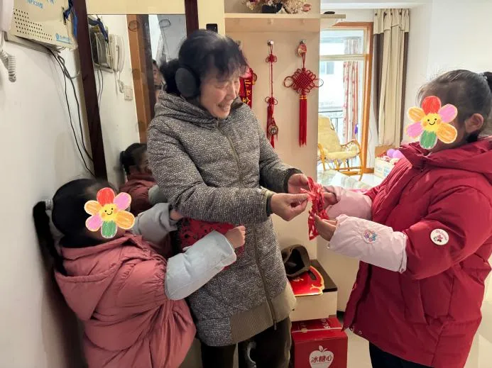 活动最动人的环节,是孩子们将亲手制作的窗花送至社区独居老人、老党员和环卫工人手中。一句句“新年快乐”“窗花送给您”,一声声稚嫩真诚的问候,让传统美德在具体行动中得以延续。窗花虽小,却满载孩子们对长辈的敬重与关爱,也映照出社区邻里间的融融暖意。
