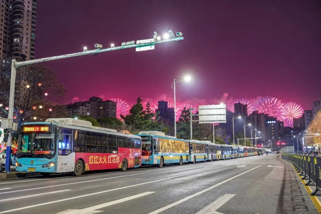 在保障常规公交有序运营的基础上,2025年,南昌公交运输集团主动作为、靠前服务,精准统筹春运、重大节假日及烟花晚会、马拉松比赛、飞行大会、迎新健步行等20余项政府指令性大型客运保障任务,全过程实现了“保障零失误、服务零投诉、安全零事故”的目标,有力践行国企担当,贡献公交力量。
