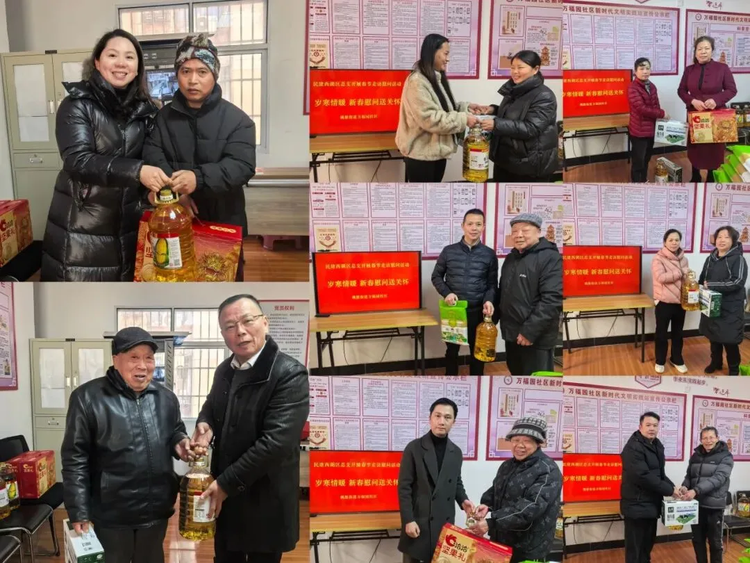 2026年2月12日上午,在马年新春佳节来临之际,民建南昌市西湖区总支组织会员赴桃源街道万福园社区开展“岁寒情暖”新春走访慰问活动。主委万莉莎带领班子成员为社区困难居民集中发放米、油、牛奶、坚果等生活物资,并与大家拉家常、问冷暖,详细了解其身体状况、家庭收入及实际困难。万莉莎表示,民建作为联系经济界的民主党派,始终关注民生、服务社会,希望这份心意能让居民感受到党和政府以及社会各界的温暖。社区负责人介绍,该地老年人口多、困难群体基数大,民建西湖区总支近年来多次开展结对帮扶,切实解决群众急难愁盼问题。