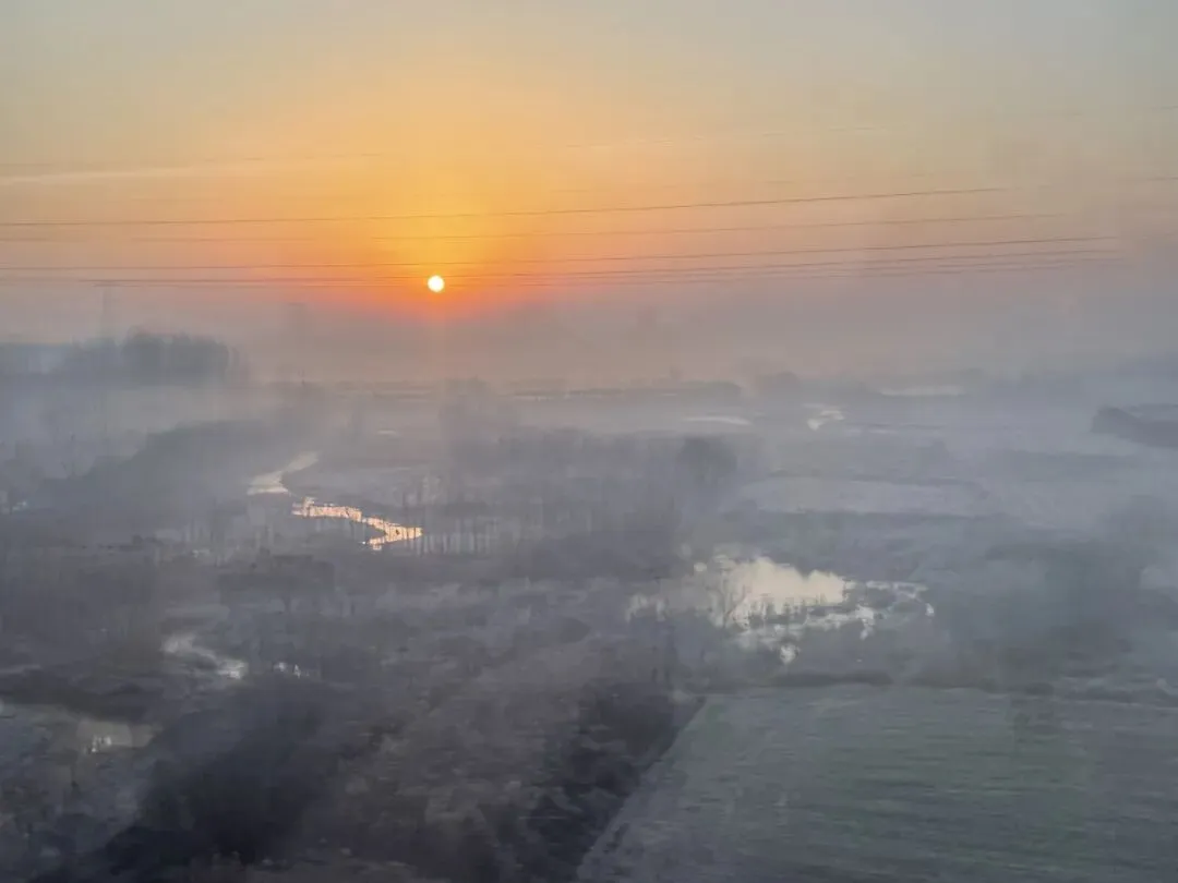 高铁上,我看着窗外的日出和晨雾。山峦在雾霭中若隐若现,像一幅刚画好的水墨画,还未干透。