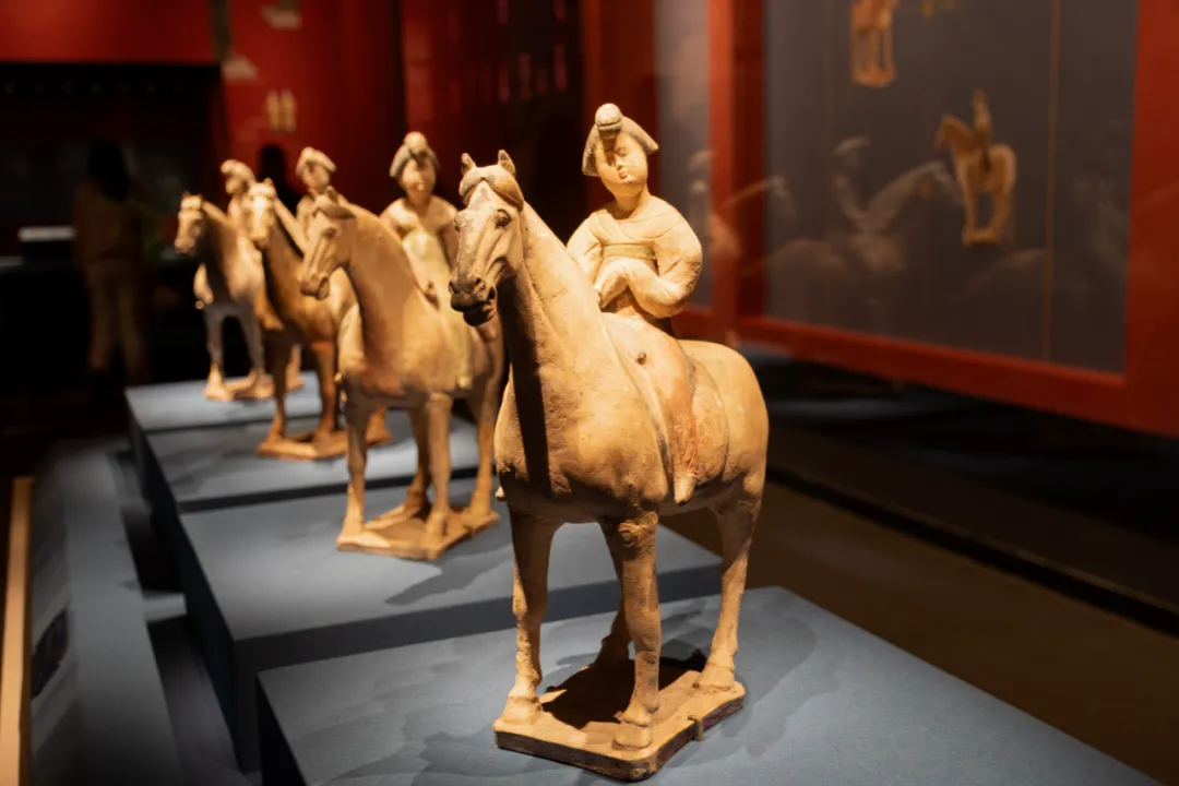 先是“戏影人间”展,里面好多皮影,做得精美逼真;接着是“生逢大唐盛世春——滕王与金乡县主联展”,各种陶俑,种类繁多,惟妙惟肖。