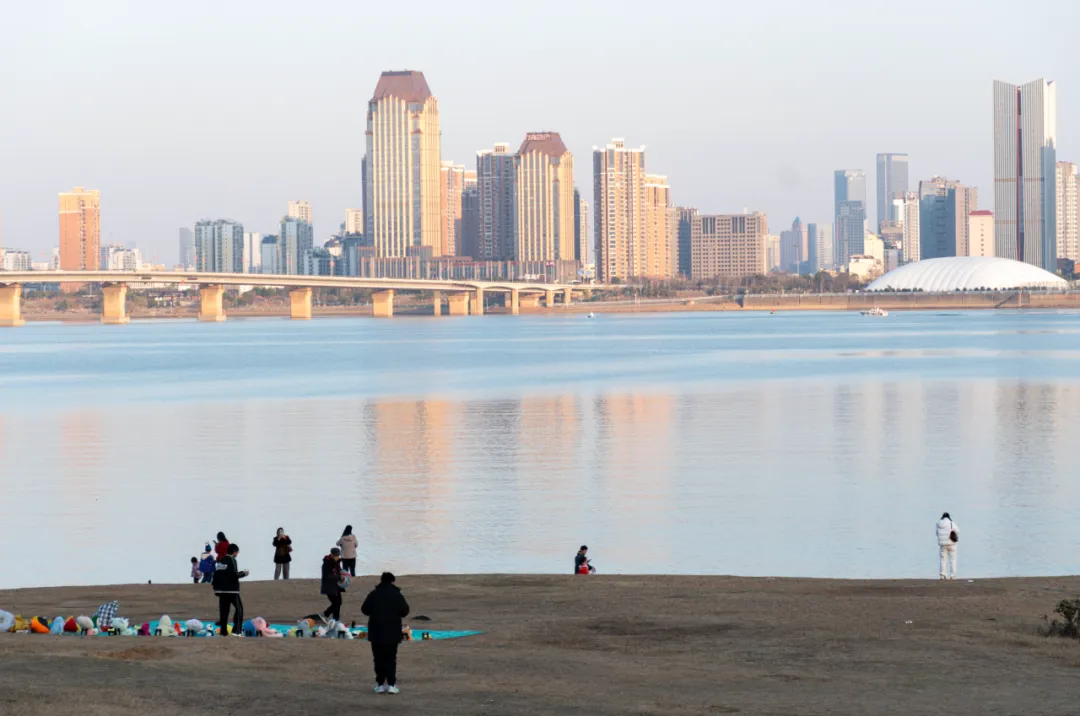 沿着赣江边的大道走,江岸上有打气球、套圈的小摊,也有拍照散步的人。微风不燥,走得惬意。