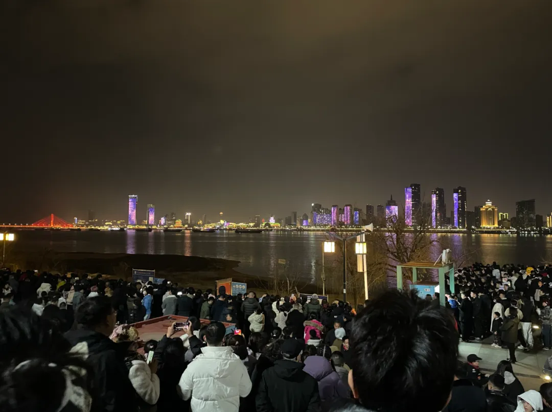 走到半路,发现一处也能看到烟花,人还不多,便坐下来等。慢慢地,周围围满了人。等了两个半小时,晚上八点,烟花终于开始了。