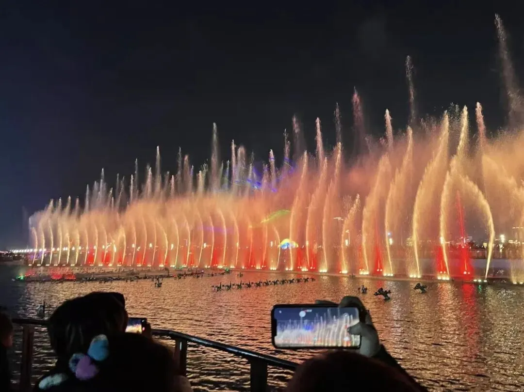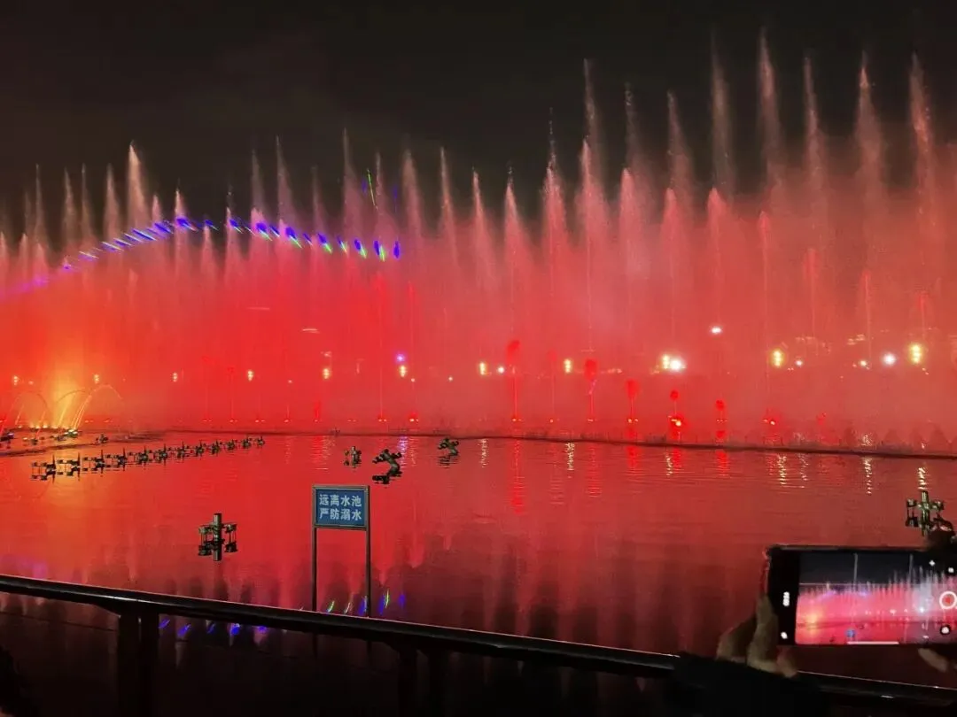 幸好没坐太靠前,不然真要“洗脸”了。水柱随着音乐起伏,灯光五彩斑斓,这是我见过最大的音乐喷泉,震撼极了。