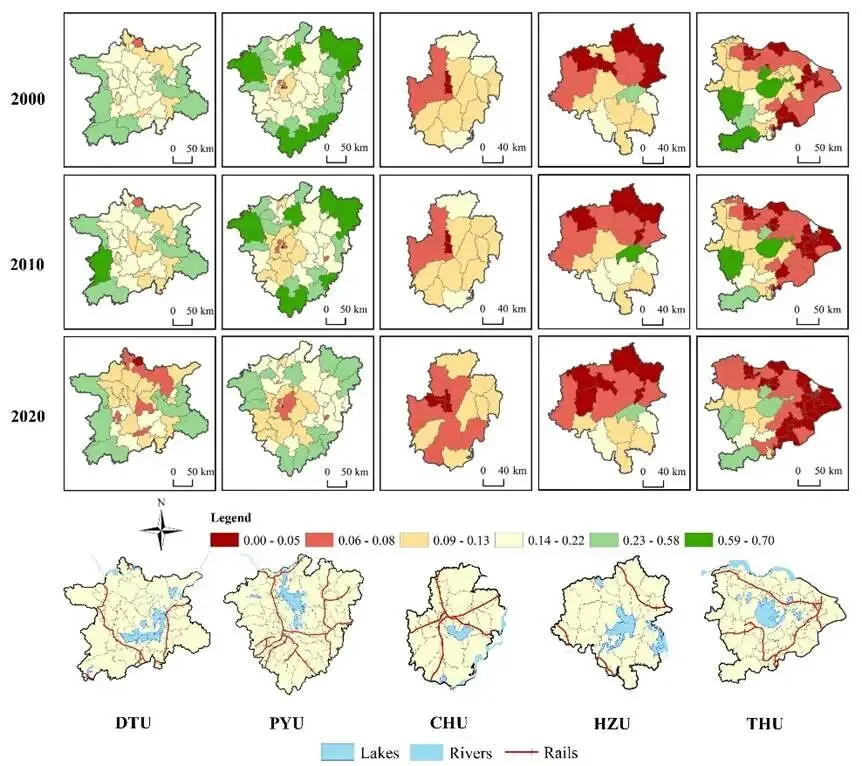 对距湖心>81 km且韧性较高的外围县区,可在严格约束下承接部分产业与人口转移,但必须避免无序摊大饼,防止外围走向“第二轮退化”。