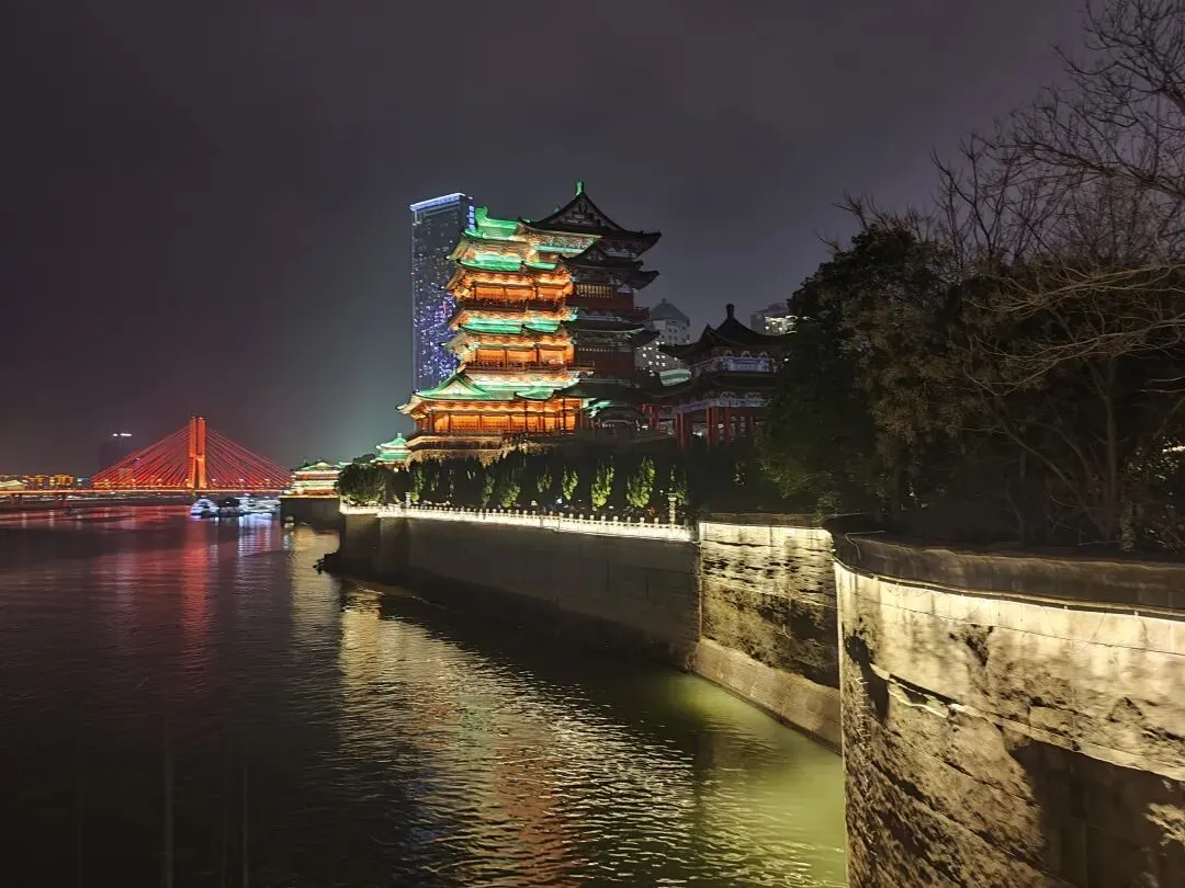 看完刘贺,入住南昌赣江边,打卡滕王阁,一江两岸灯光璀璨,南昌的夜晚变得流光溢彩,感受这份宁静与美好,在江边站立片刻,闻一下风吹来赣江湿润清新的味道,细雨绵绵,两岸缤纷色彩倒映在江面,像城市跳动的音符。