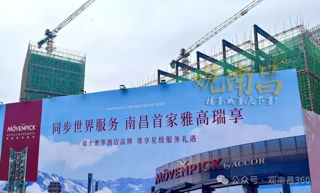 2022年5月9日,“李雪梅”以总价约2.5亿元摘得红谷滩中央商务区商务金融(兼容商业)用地。后续明确为蓝城酒店项目(南昌市长州鑫远中心)。根据拿地时的要求,涵盖自持五星级标准酒店及运营后入驻金融机构的要求。但是间隔了两年多时间,直到2024年规划方案“降高”后,现场在年底终于开工。目前整个主地块的大部分建筑物基本都出地面了,使得现场已经拥有了规模感。从进度上来看,沿丰和中大道分布的服务型公寓建的最高,此外酒店部分正在进行酒店大堂其配套内容的建设。更重要的是,目前该项目官宣了进驻酒店的品牌,为瑞士奢华酒店品牌,南昌首家雅高瑞享。据了解,雅高瑞享(Mövenpick by Accor)是雅高集团旗下高端酒店品牌。1948年在瑞士苏黎世创立,2018年被雅高集团全资收购;2022年7月尚美数智与雅高达成战略合作,正式引入中国市场。定位高端五星级,主打瑞士风情、美食体验与可持续理念,连续多年获绿色地球组织认证。目前国内已落地青岛、上海、成都、南京、杭州等城市,青岛是国内首个开业的瑞享酒店,上海人民广场店为上海旗舰。该项目位于红谷滩区丰和中大道以南、雅苑路以东;紧邻地铁2号线雅苑路站,周边商务氛围极其浓厚,包括农业银行、光大银行、渤海银行、上饶银行、北京银行等众多银行办公企业及多个星级酒店项目。早在拿地时就规定,引入五星级标准酒店,须100%自持酒店15年,自持时间内业态不可调整。项目投入运营后24个月的金融机构入驻。项目用地20599.41平方米,总建筑面积112484.59平方米,计容建筑面积82397.64平方米。酒店36932.35平方米(客房287间),服务型公寓41196.51平方米(办公面积2913.09平方米)。机动车位737个,非机动车位329个。主要为3栋28层服务型公寓为主,构架高度均为109.65 米;局部设计了沿街商铺。酒店大楼位于地块西北侧,为23层(构架高度109.65 米),南面打造一栋4层楼的酒店宴会厅。当然,除了自持的酒店外,未来项目还将对出售公寓,面积在260~550平之间,一共为126户。作为红谷滩CBD核心区的项目,周边基本上又没有新的住宅用地供应,所以在该地段要选择新产品将非常局限。那么结合当下楼市及区域供应背景,这认为该项目公寓部分会有市场吗?