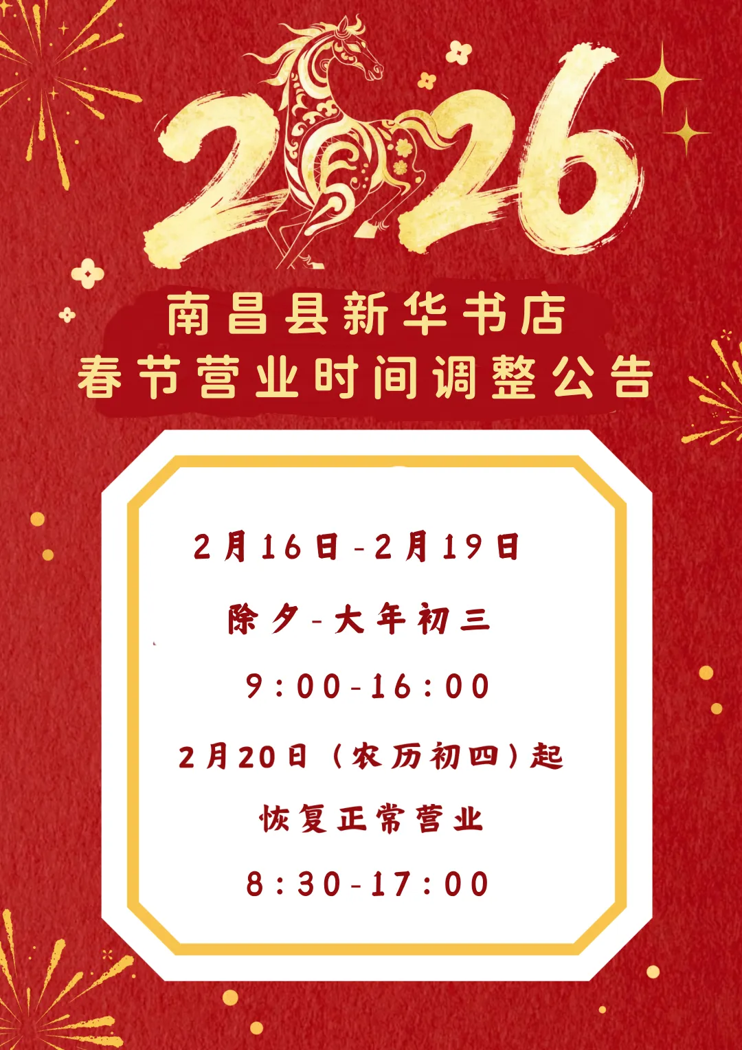 春节不打烊 | 南昌县新华书店春节营业时间调整公告