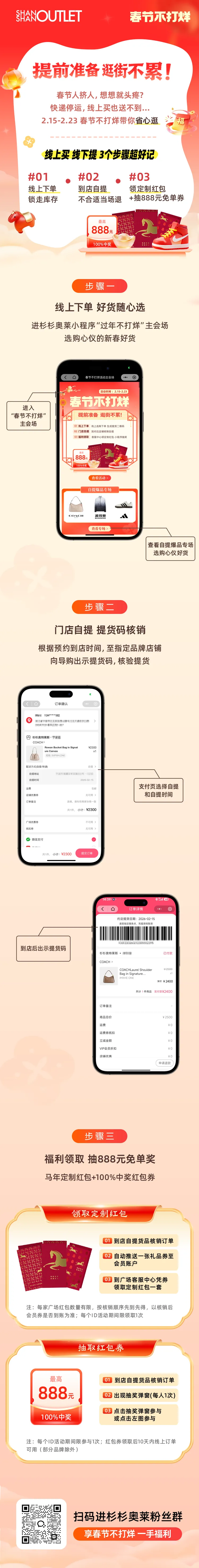 【南昌杉杉奥莱】丨春节不打烊,自提赢好礼!马年定制红包,免单礼等你领!