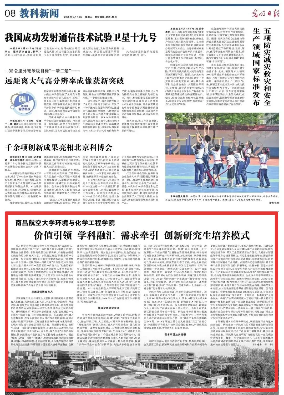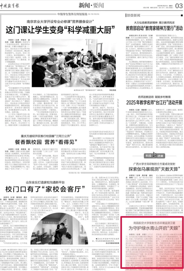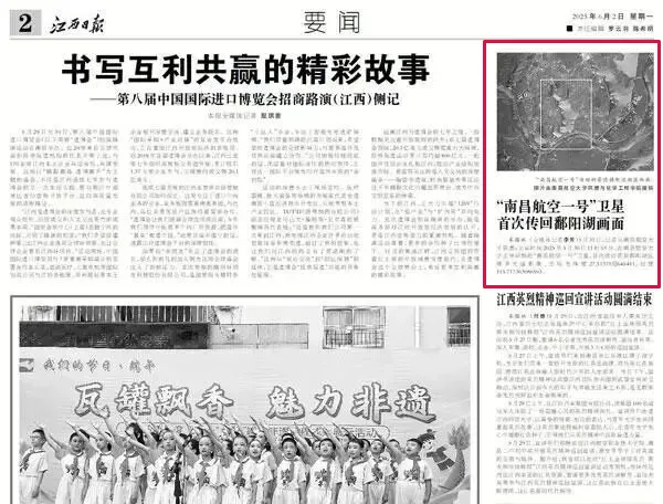 《中国教育报》报道我校“南昌航空一号”作为全国首颗专为大型湖泊生态监测打造的遥感卫星,以鄱阳湖、赣江流域为核心“瞭望”目标,标志着江西省在空天信息技术应用领域迈出了关键一步,为守护绿水青山开启了“天眼”模式。