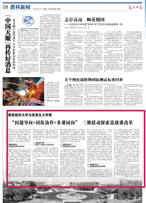《光明日报》报道我校马克思主义学院通过打造“问题导向+专题呈现+活页补充”的教学内容体系、“名师示范+教师展示+专家指导+团队磨研”的新型教研共同体,以及“主课堂+拓展课堂”的立体化教学网络,形成辐射全省的示范样本。
