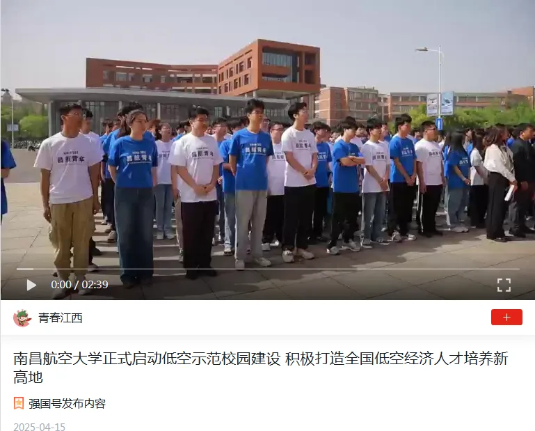 《学习强国》报道我校正式启动低空示范校园建设,积极打造全国低空经济人才培养新高地。