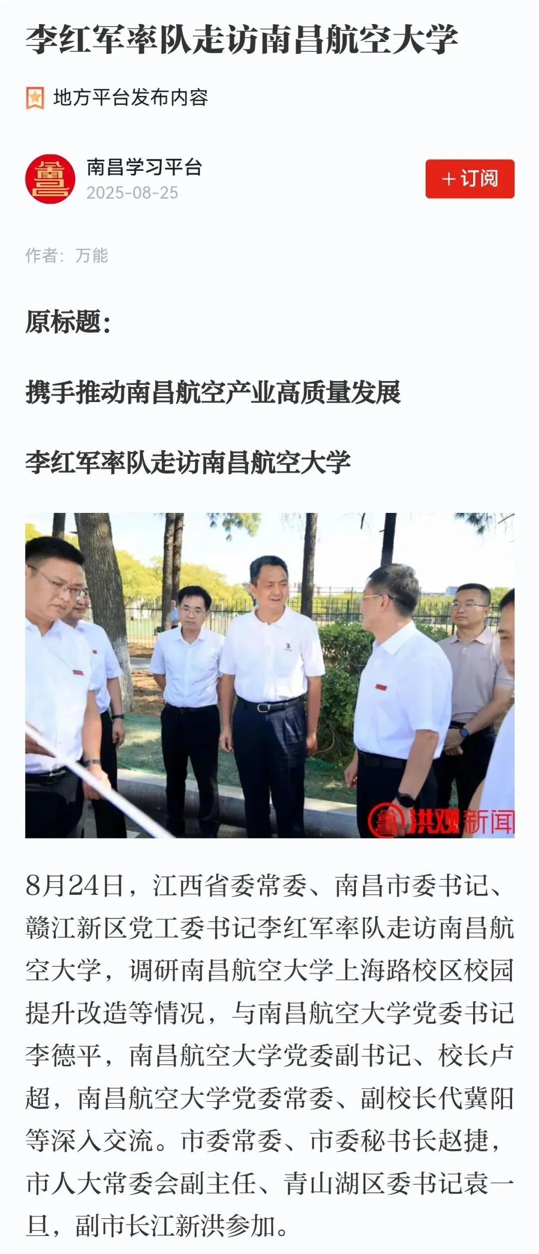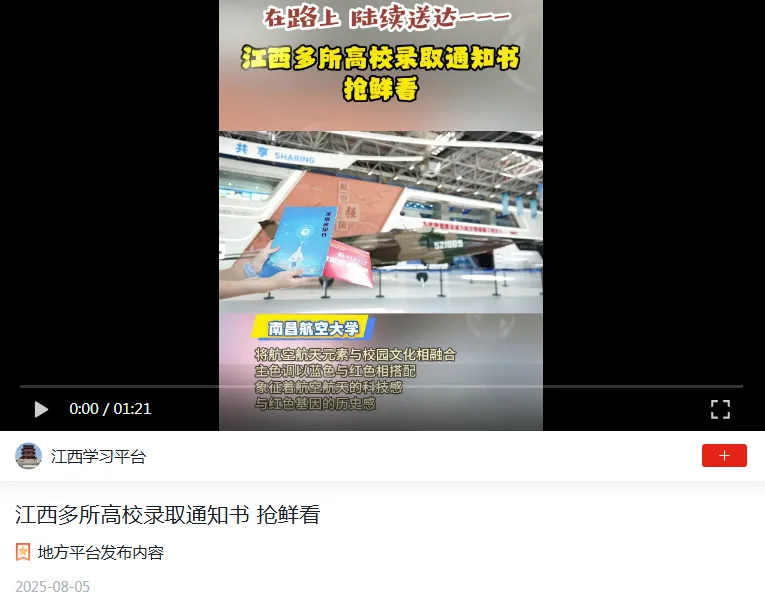 《江西教育电视台》报道“牢记嘱托强国有我 行走赣鄱感恩奋进——文化赣鄱行”2025年江西高校学子暑期大思政实践活动启动仪式在南昌航空大学举行。