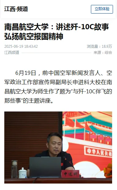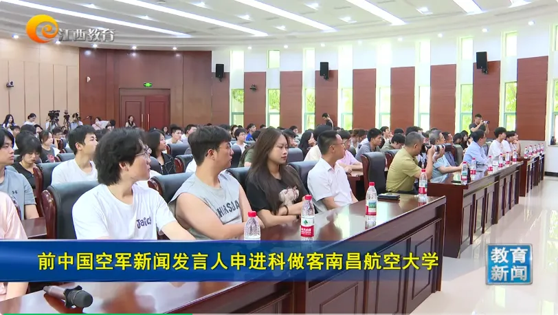 《江西教育电视台》报道中国公共关系协会国防教育专家、前中国空军新闻发言人申进科大校走进南昌航空大学,为师生作“我给歼-10C‘伴飞’那些事”专题讲座。