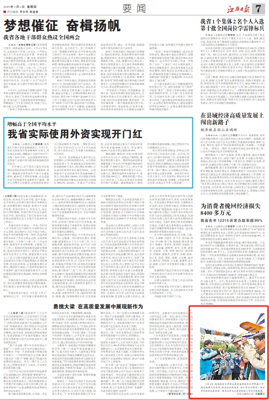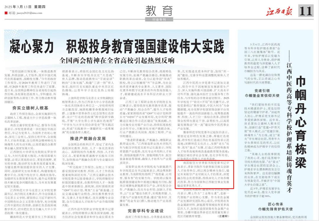《江西日报》报道我校教师代表就我校“凝心聚力 积极投身教育强国建设伟大实践”畅谈体会。