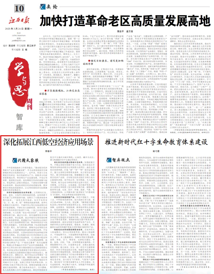 《江西日报》报道我校党委书记李德平署名文章:《深化拓展江西低空经济应用场景》