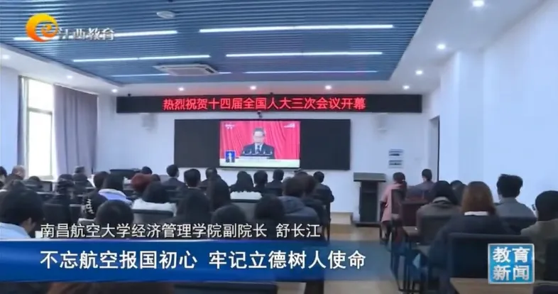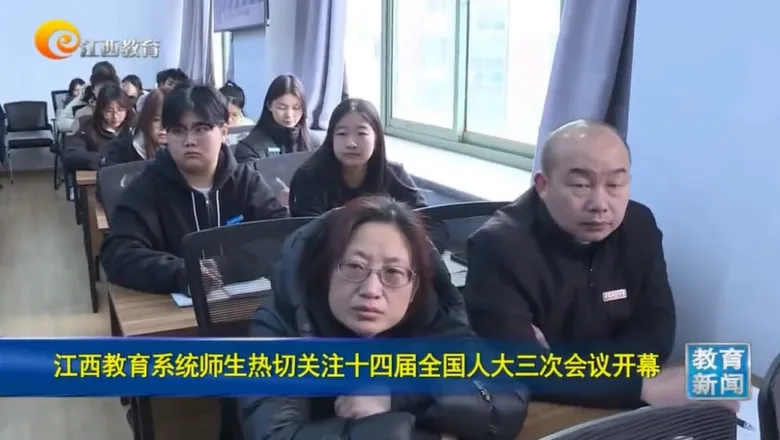 《江西教育电视台》报道我校师生热切关注全国两会。