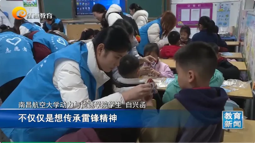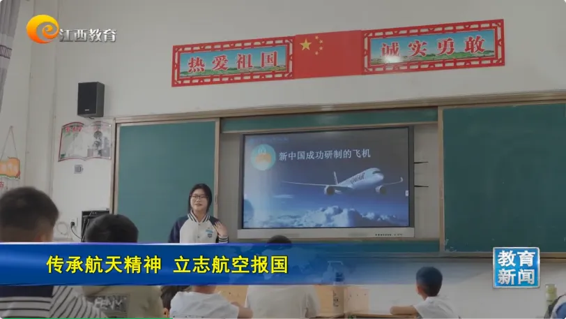 《江西教育电视台》报道动力与能源学院航空科普志愿服务团队走进南昌大学附属小学(前湖校区),开展了主题为“航空科普进校园,童心共筑航天梦”的学雷锋志愿服务活动。