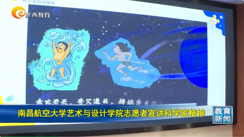 《江西教育电视台》报道我校艺术与设计学院大学生志愿者来到南昌航空大学附属学校,开展弘扬科学家精神主题宣讲。