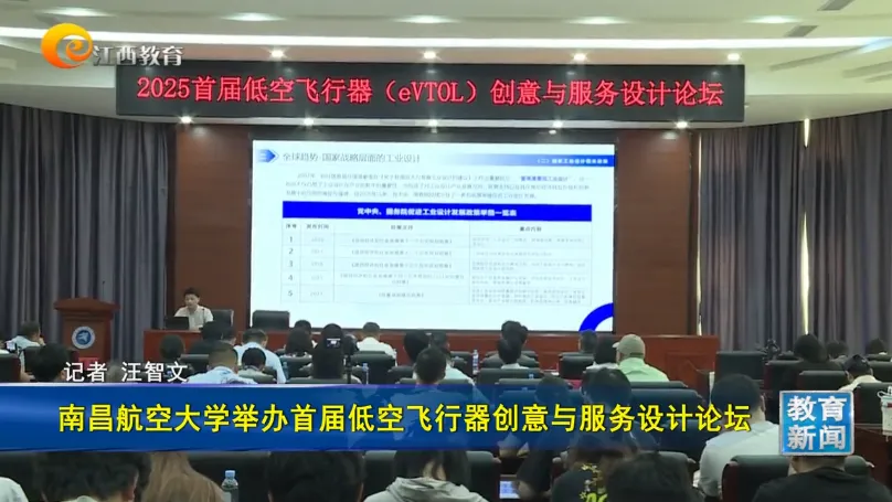《江西教育电视台》报道我校举办首届低空飞行器创意与服务设计论坛。本次论坛以“低空新视角・飞行智创意”为主题。来自教育界、设计行业及产业界的三十多位专家、学者作主题报告。