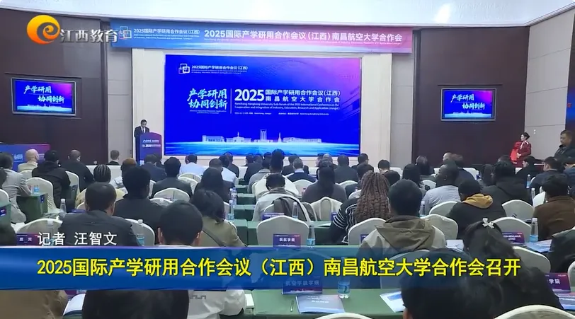 《江西教育电视台》报道2025国际产学研用合作会议(江西)南昌航空大学合作会在南昌举行。