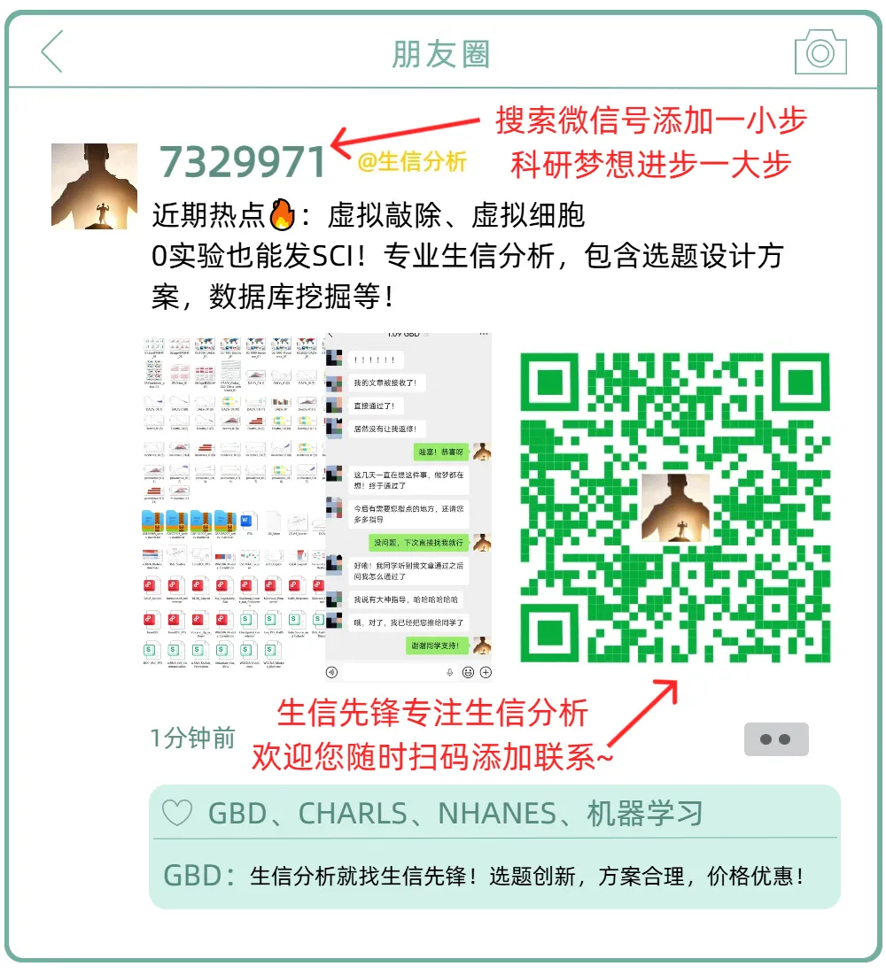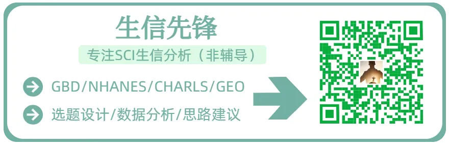生信先锋专注生信分析,如果你也想用GBD、孟德尔随机化进行研究,需要生信分析,复刻高分思路,那就快后台联系小先锋吧~生信先锋,助力科研梦,相信下一篇顶刊就是你!