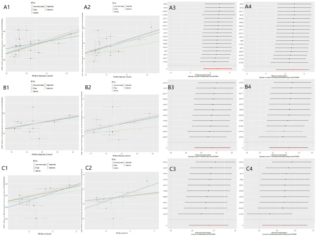值得注意的是,肥胖与非子宫内膜样亚型无显著关联(I-III 级肥胖 OR 分别为 1.19、1.02、1.06,P 均 > 0.05)。经 IVW 法、异质性检验、留一法等敏感性分析验证,上述结果稳健可靠,无明显偏倚(图 6)。这一关联独立于糖尿病、吸烟、饮酒等混杂因素,为子宫内膜癌亚型特异性防控提供了关键依据。