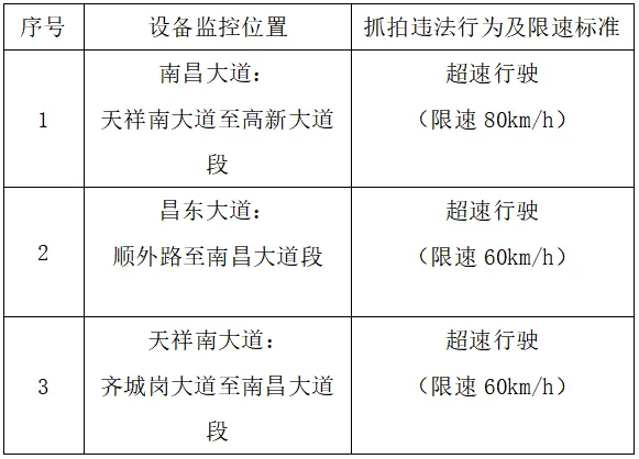 根据规定,上述设备公示期为5日。自公示期满之日起,南昌市公安局交通管理支队将正式启用设备进行摄录取证,并依法对超速违法行为进行查处。请广大机动车驾驶人自觉遵守道路交通安全法律、法规,严格按照道路交通标志、标线指示通行,安全驾驶、文明出行,共同维护良好的道路交通环境。